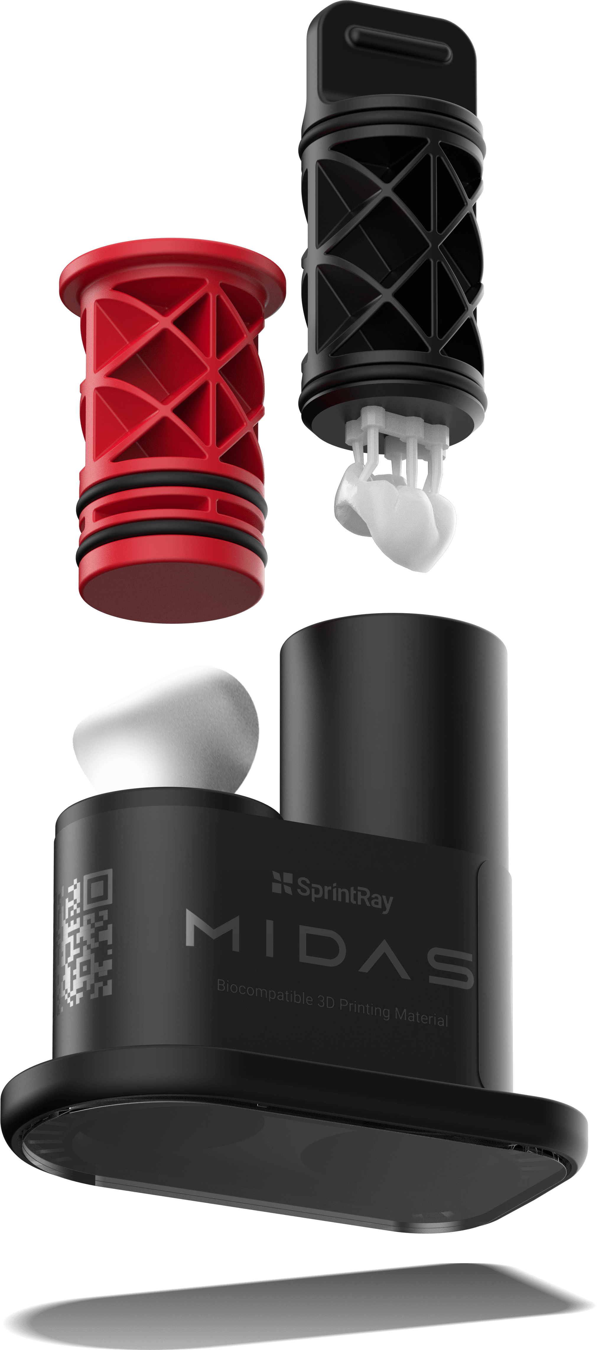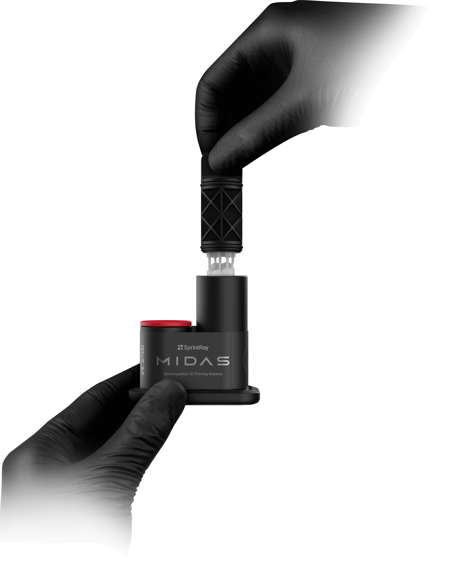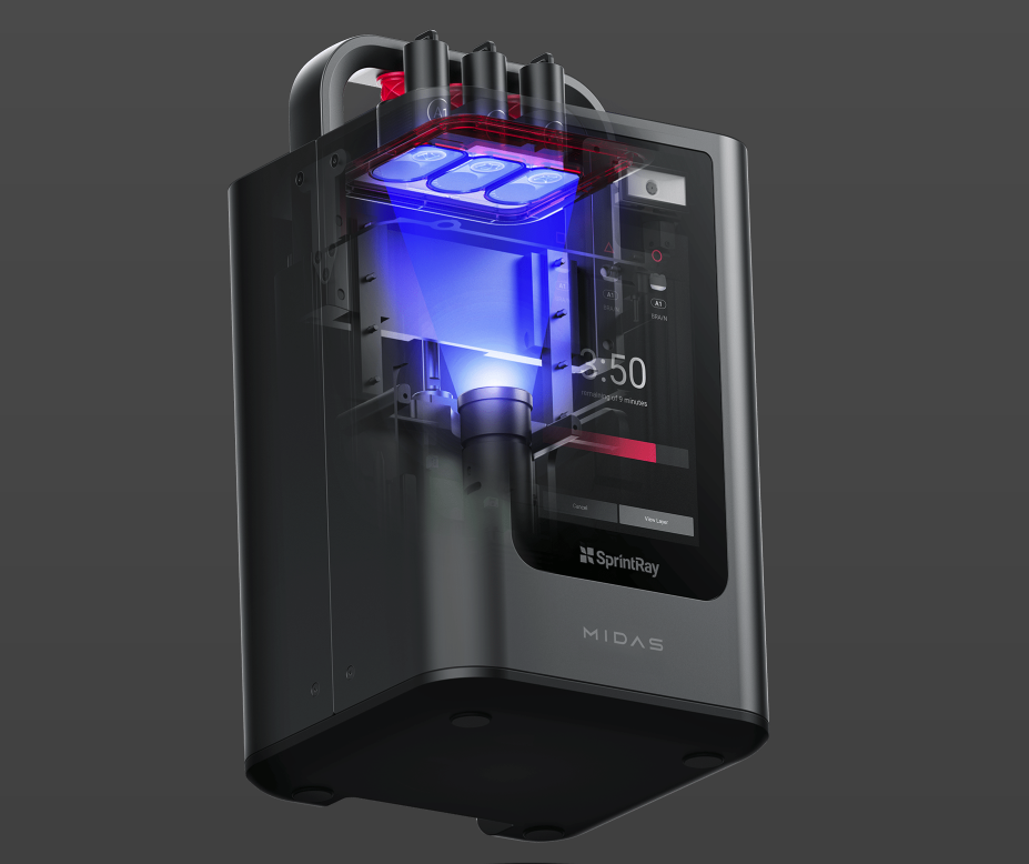 Midas utiliza la estereolitografía de prensa digital, un método de impresión que sustituye la resina, el tanque y la plataforma de impresión por una cápsula. Este avance permite a Midas imprimir con resinas muy densas y que son demasiado viscosas para una impresora 3D convencional.