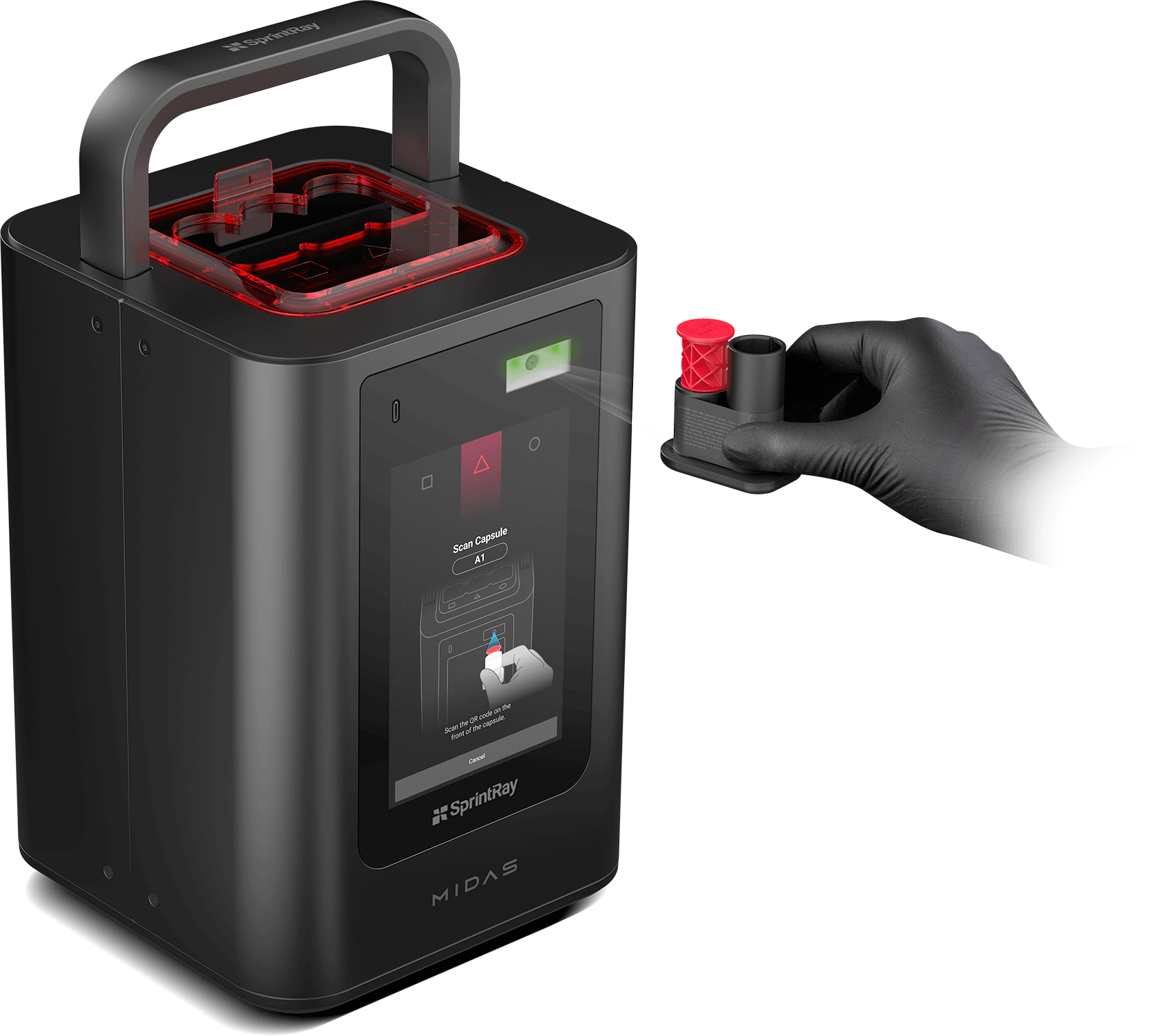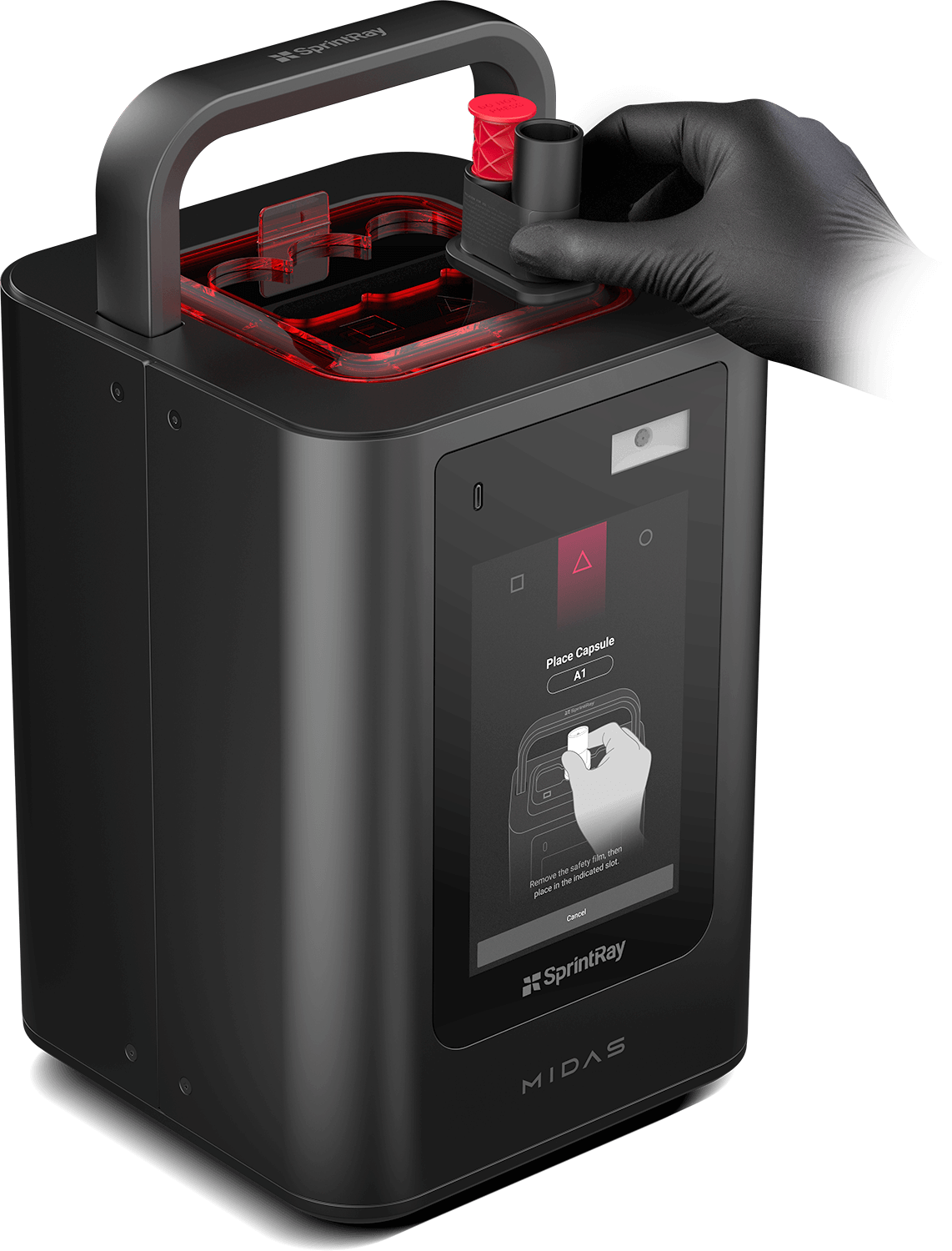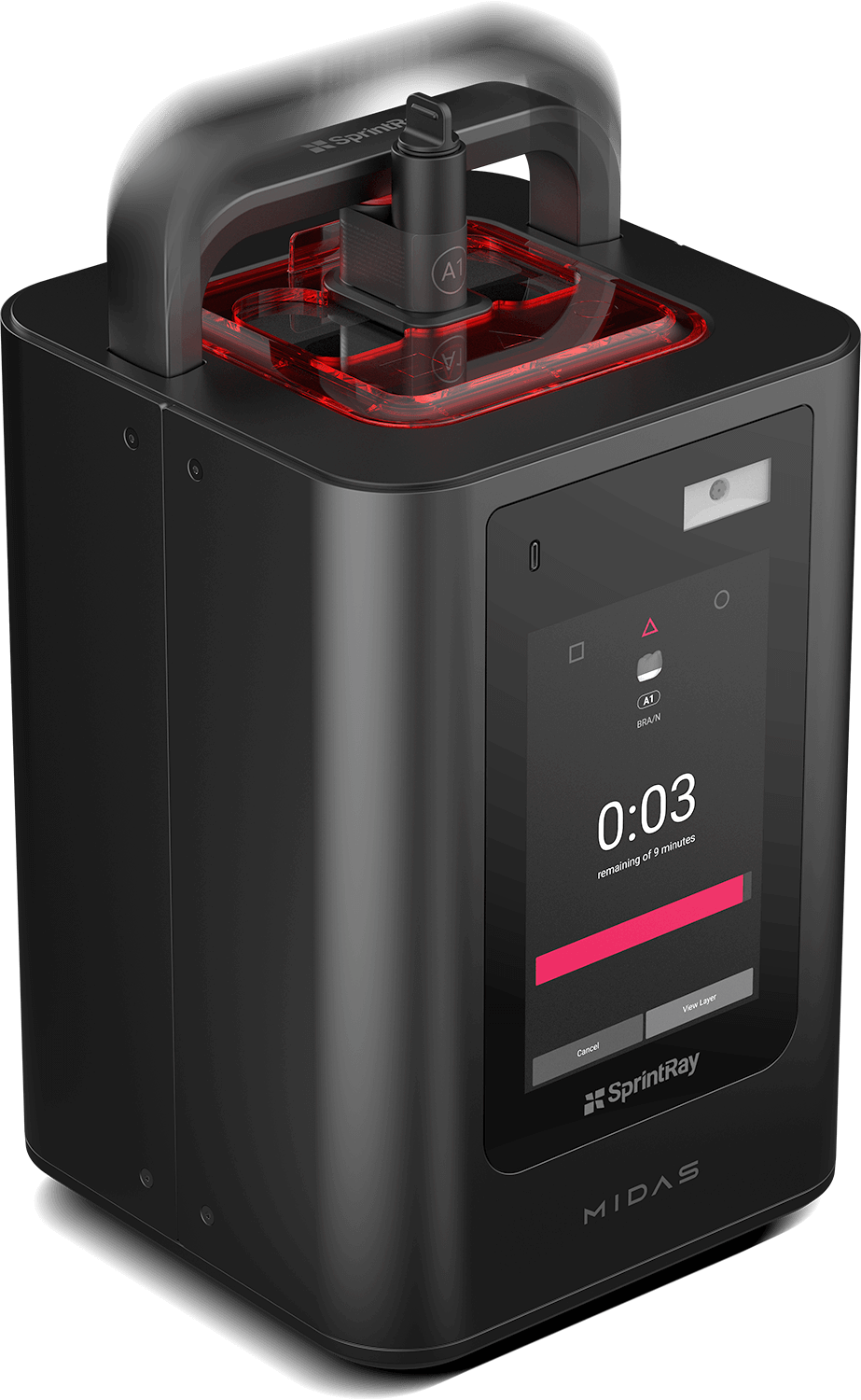 Midas utiliza la estereolitografía de prensa digital, un método de impresión que sustituye la resina, el tanque y la plataforma de impresión por una cápsula. Este avance permite a Midas imprimir con resinas muy densas y que son demasiado viscosas para una impresora 3D convencional.