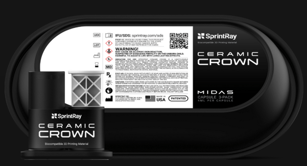 Ceramic Crown es un material autorizado por la MDR de Clase IIa para la impresión 3D ahora disponible en cápsulas DPS para el flujo de trabajo de impresión de restauraciones más sencillo en Midas. Con una formulación de cerámica dominante y tiempos de impresión inferiores a diez minutos, Ceramic Crown es el material que necesitas para tus restauraciones.